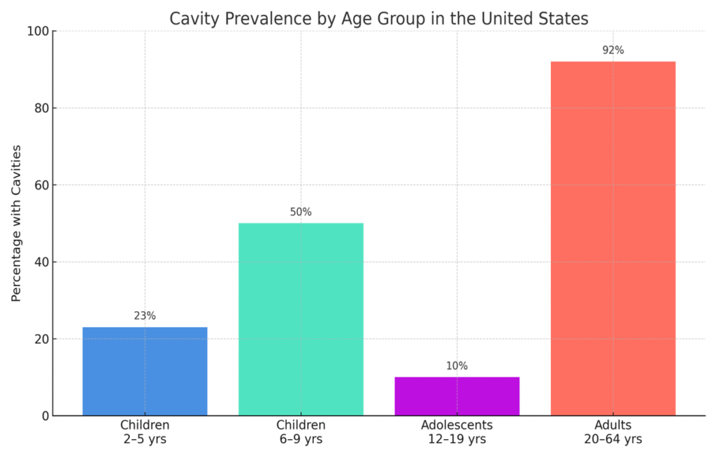 The statistics show something else important too. By age 9, about 50% of children have already had cavities in either their baby teeth or permanent teeth. Children from lower-income families face even higher risks, with rates more than double those of children from higher-income households. This tells me that cavities are not just about individual habits—there are bigger factors at play.